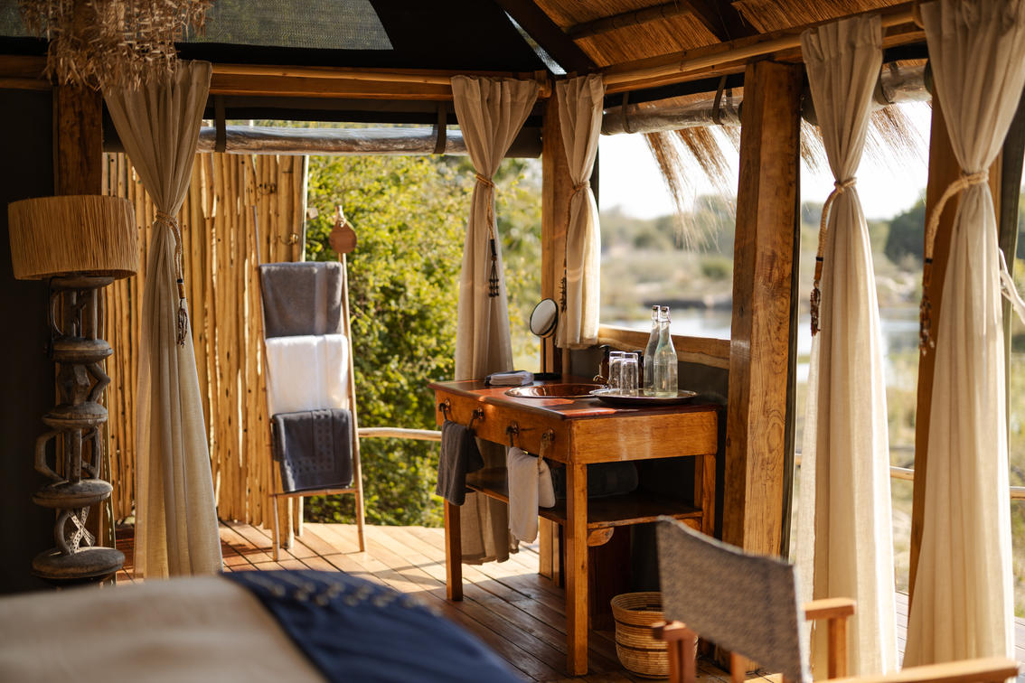 Imagine bathing together beneath the stars on your private deck before climbing into a four-poster bed draped in netting. Then, wake to hippos in the river and birds twittering in the trees, knowing another day of relaxed island living lies ahead of you.
