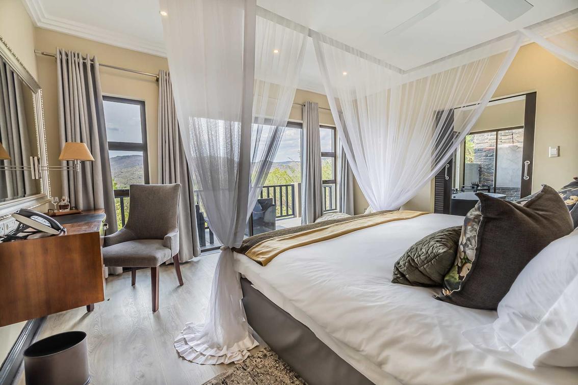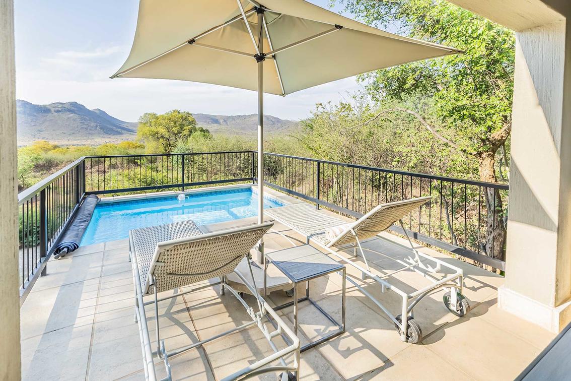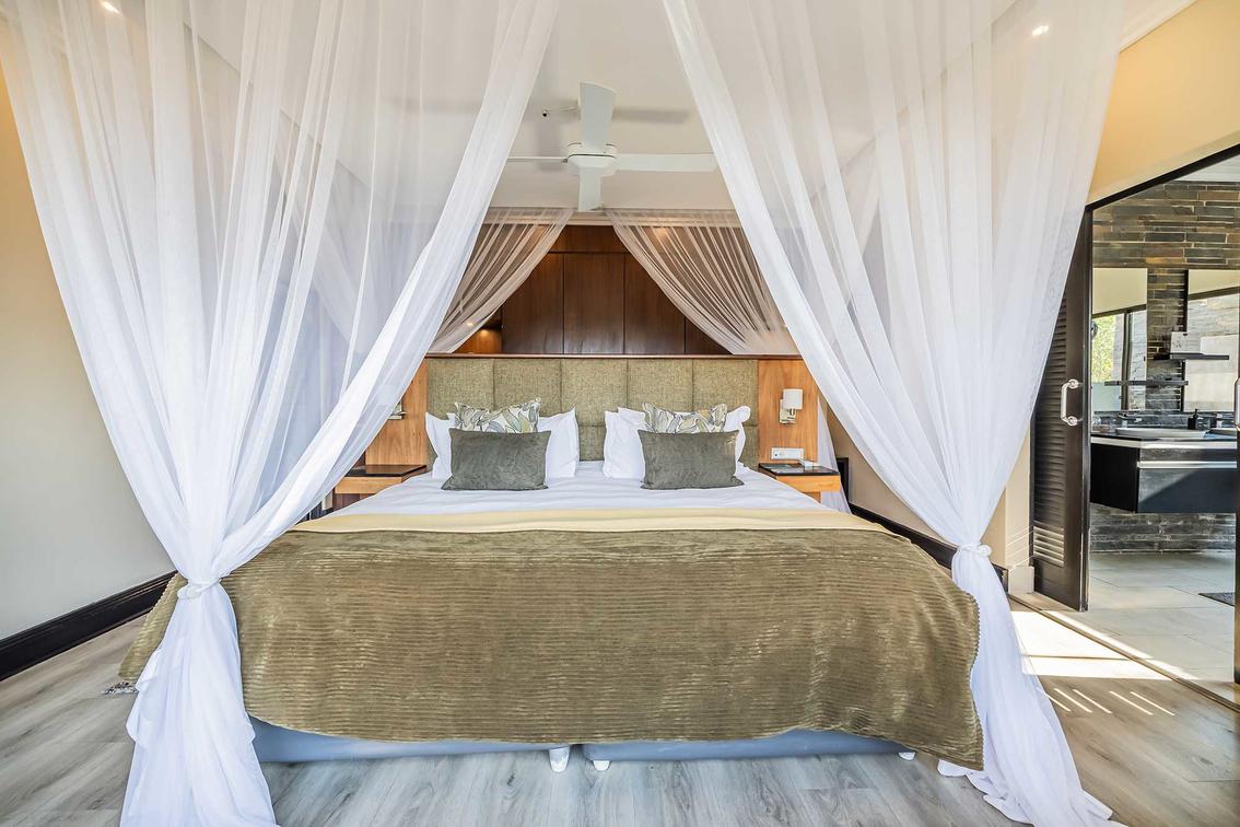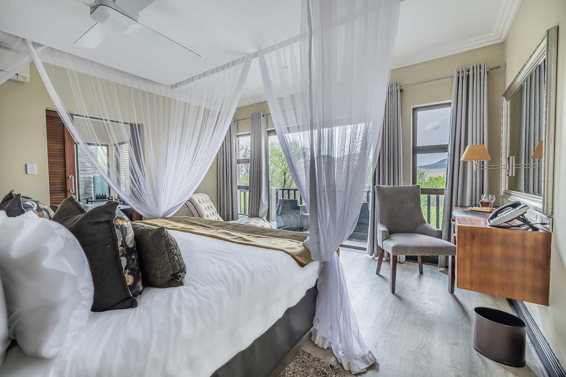 The Standard Suite sleeps two adults features an en-suite bathroom as well as an outside shower, and a private patio overlooking the extensive game reserve. The Standard Rooms can also be combined into a Family Room which includes an additional two sleeper-couches. TVs are available in a Family Room option only.