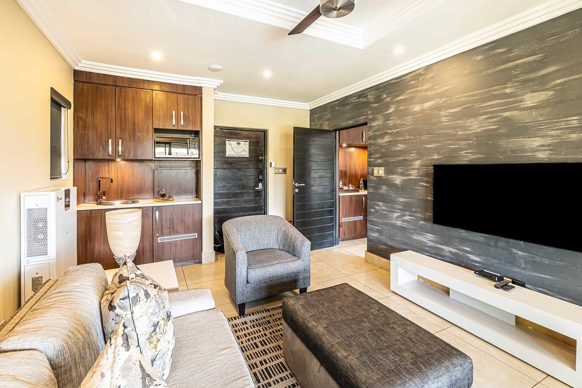 2 Standard Suites that open onto a shared lounge (which can sleep 2 children on sleeper couches) allow for a spacious family offering that can sleep up to 6 people. The lounge and covered patio provide for a welcome retreat from the heat of the day. The lounge has a flat screen TV with DSTV.