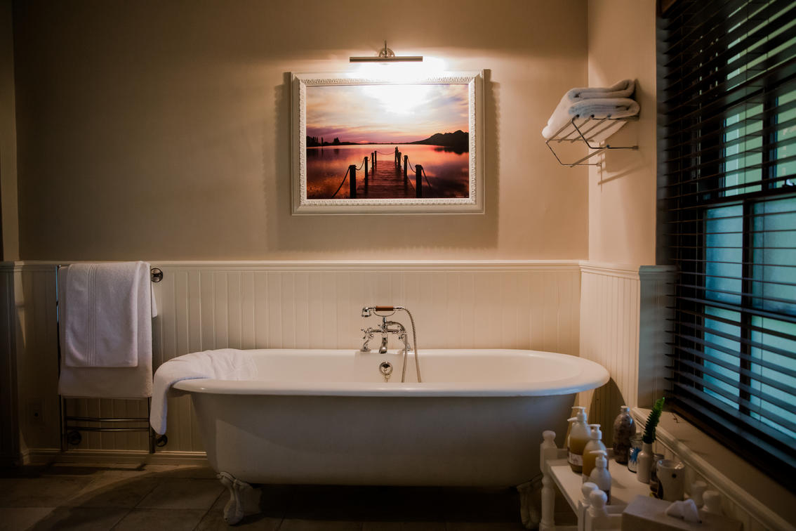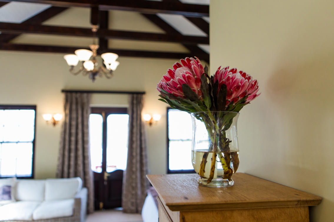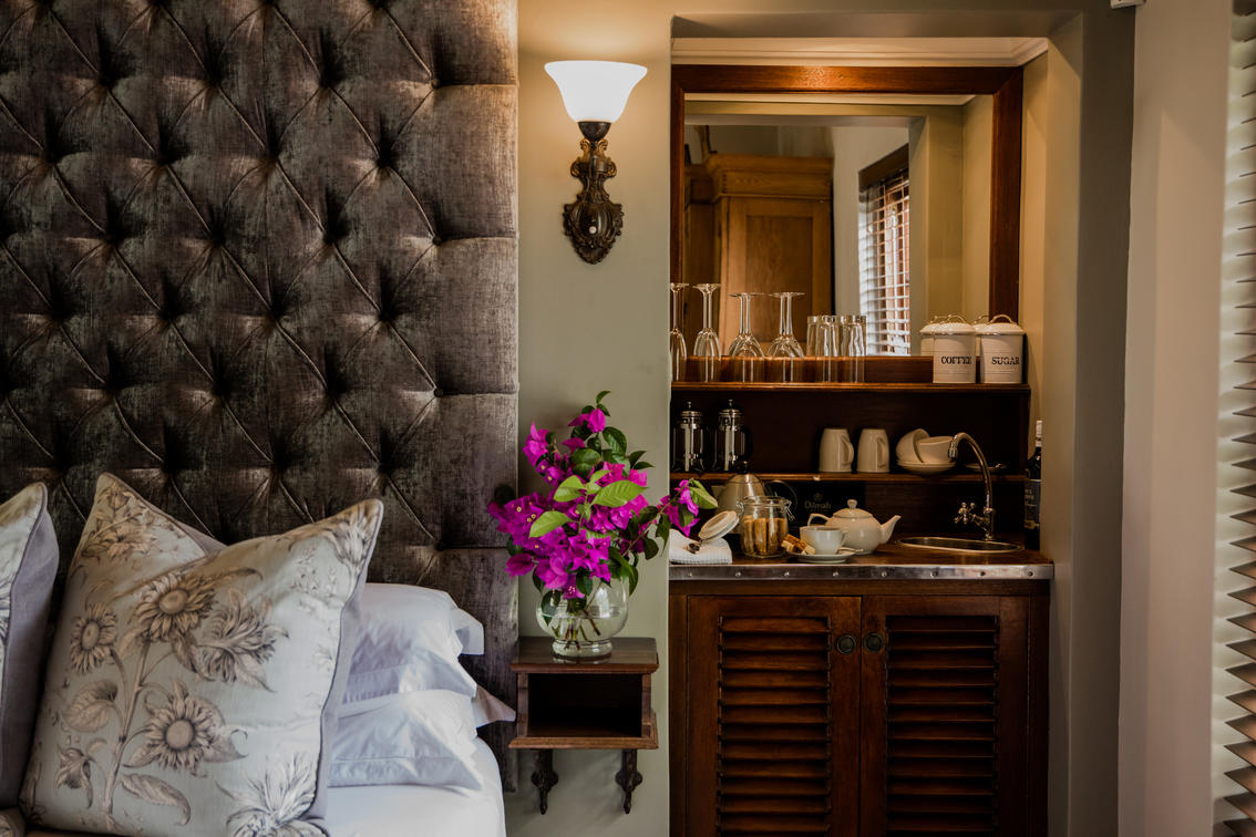 The Honeymoon Suite is unashamedly romantic and private with its large hearth, exquisitely carved four-poster bed and oversized bathroom. It is tucked away on the edge of a shady forest with the Koornlands River gurgling along at its perimeter.