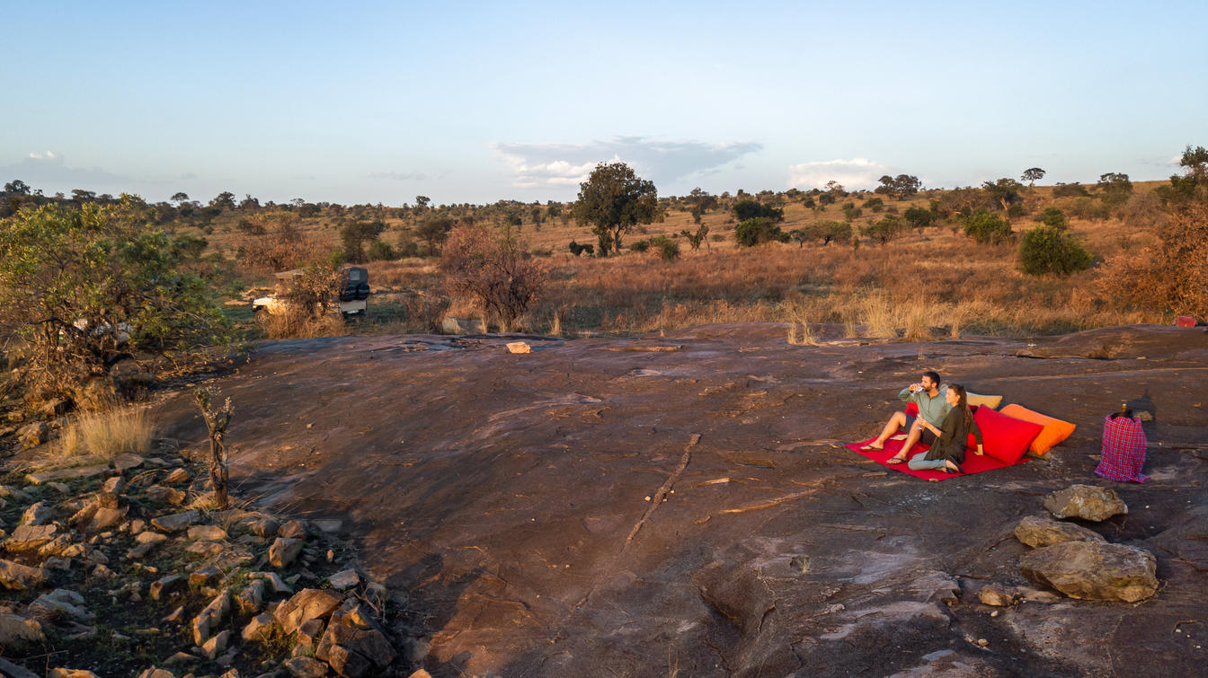 There is something utterly enchanting about those precious moments when the African wilderness awakens around you – when the first golden rays pierce the darkness and the Serengeti slowly emerges from its slumber in a breathtaking display of amber and rose. Picture yourself awakening before dawn to witness nature's most spectacular daily performance. As the inky sky gradually lightens, the vast Serengeti plains transform from mysterious silhouettes into a golden tapestry stretching endlessly toward the horizon. The air is crisp and pure, filled with the gentle sounds of the bush stirring to life – distant bird calls, the rustle of grass in the morning breeze, and perhaps the distant roar of a lion marking the end of the night's hunt. Your dedicated butler arrives and leads you to your private bush breakfast at a carefully chosen vantage point overlooking the plains. As the sun climbs higher, painting the sky in brilliant oranges, pinks, and golds, you're treated to a feast for all your senses. The aroma of freshly brewed Tanzanian coffee mingles with the earthy scents of the awakening savanna, while a sumptuous breakfast is laid before you.
