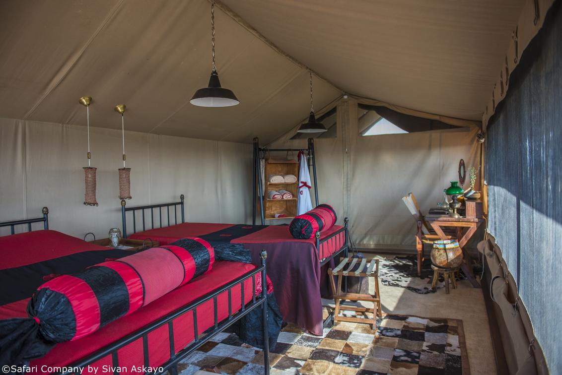 Seven comfortable safari tents all equipped with their own ensuite bathrooms with flushing toilet and open air shower with running water. Each tent has traditional beds and storage space.