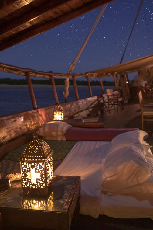 Life on-board is relaxed and centered on Tusitiri’s broad deck. Sumptuous cushioned seating areas are set up on both sides of the deck by day, and at night, brass lanterns light up the deck and comfortable white linen bedrolls are set up and the day cushions are removed. On Tusitiri, all the beds are star-beds!