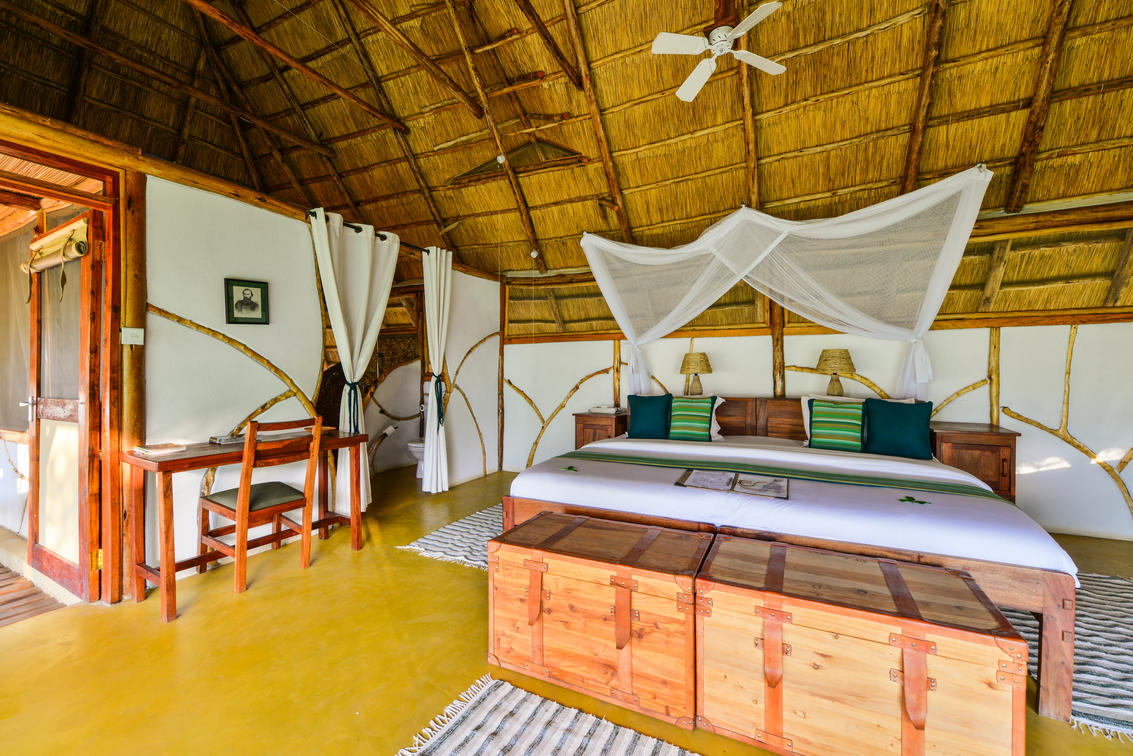 These spacious cottages are fitted with solar lighting and water heating, mosquito nets, bespoke wooden furniture and locally crafted accessories. The en-suite bathrooms are open plan, with some units featuring a bath with a view. Twin and double room options are available.