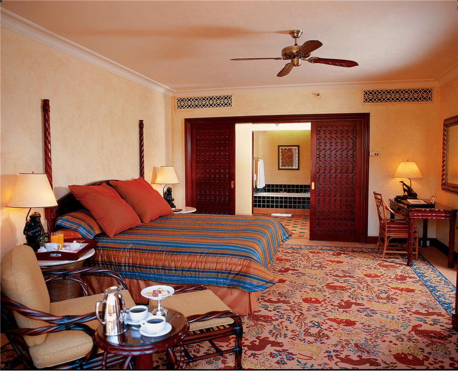 The African Suite offers 2 king bedded rooms and 2 en-suite bathrooms with separate shower and twin marble topped vanities. There is also a separate entrance foyer, dining area, lounge with a fold out sleeper couch. Other features include a private outdoor Jacuzzi, sauna, baby grand piano and a bar.