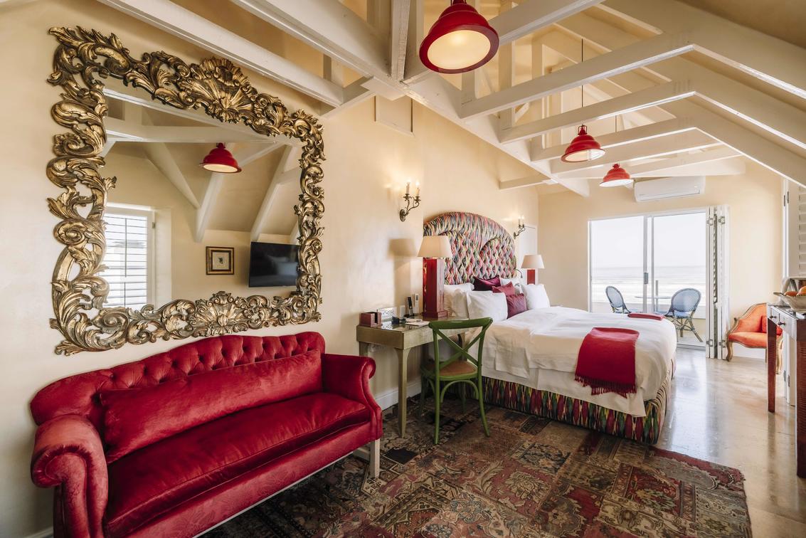 The 43m2 Deluxe Superior Rooms are beautifully designed sea-facing rooms in the front house, both generous balconies. Each of these rooms have a seating area, mini-bar, Smart TV, and air conditioning. The large en suite bathrooms each have a bath and a shower.