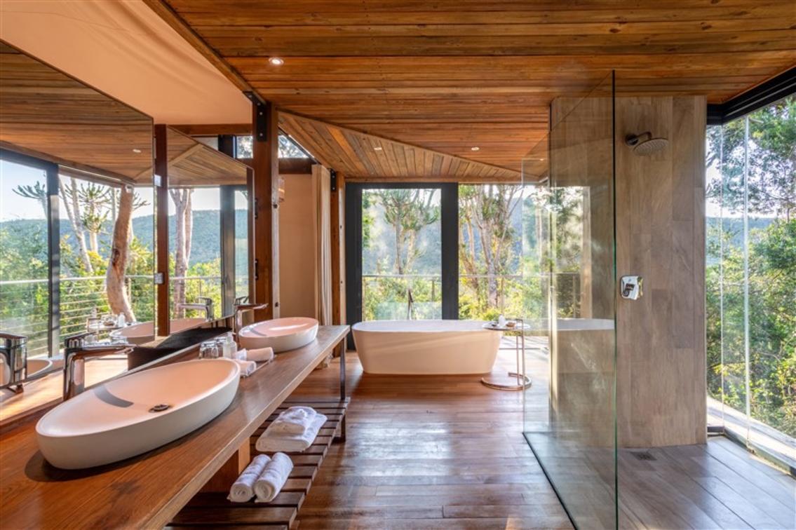 Meandering bush paths connect luxurious air-conditioned suites with open-plan bathroom, each offering complete privacy with their own breath-taking views and private plunge pools. Rate includes all meals, selected beverages, game drives and activities (excludes conservation & community levy).