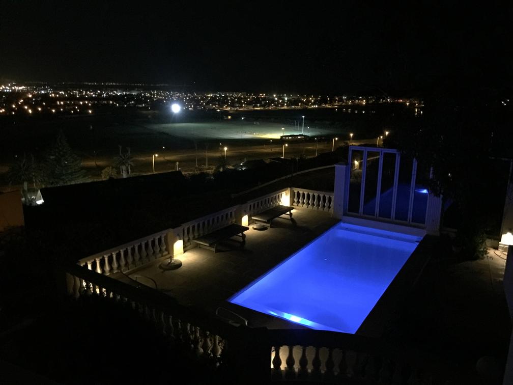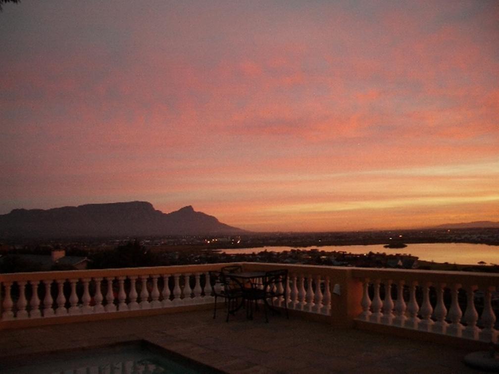 This Executive Suite has an air-conditioned bedroom with two large 3/4 twin beds set together (or Super King), a marble en-suite bathroom with a large open shower, a separate lounge with two reclining beds and a separate dressing room. Views from the patio span from Table Mountain, across Sandvlei Lake, the Cape Peninsula and False Bay.