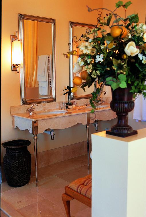 This Executive open plan Suite, all marble and glass from floor to ceiling, has an air-conditioned bedroom with a Four Poster Super King-size extra-length bed (2 metres x 2 metres), and sitting area. A contemporary bathroom en-suite enjoys a face to face bath with lumbar support, a large separate steam shower with a bench, and a separate cloakroom. Private patio. Views of Sandvlei Lake, False Bay, beaches and Cape Hangklip in the South Atlantic Ocean.