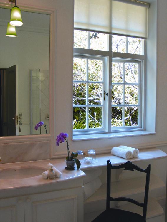 This Executive Suite has a large air-conditioned bedroom with a Four Poster King-size extra-length bed, a bathroom en-suite with a Victorian bath/telephone shower and a separate marble shower, a separate lounge and a large sheltered balcony with views of Table Mountain and Cape Peninsula.