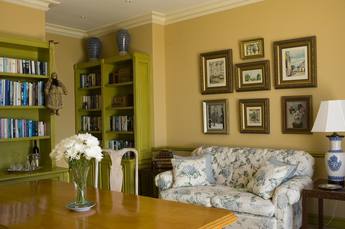 This Full Luxury Suite, a twin bedded air-conditioned bedroom with two ¾ extra length beds set together (or Super King) has two bathrooms en-suite, one with a large open shower, the other with a face to face Victorian bath and a separate cloakroom. It also has a separate lounge and a large balcony with sweeping panoramic views across Table Mountain, the Peninsula, Sandvlei Lake, and False Bay.