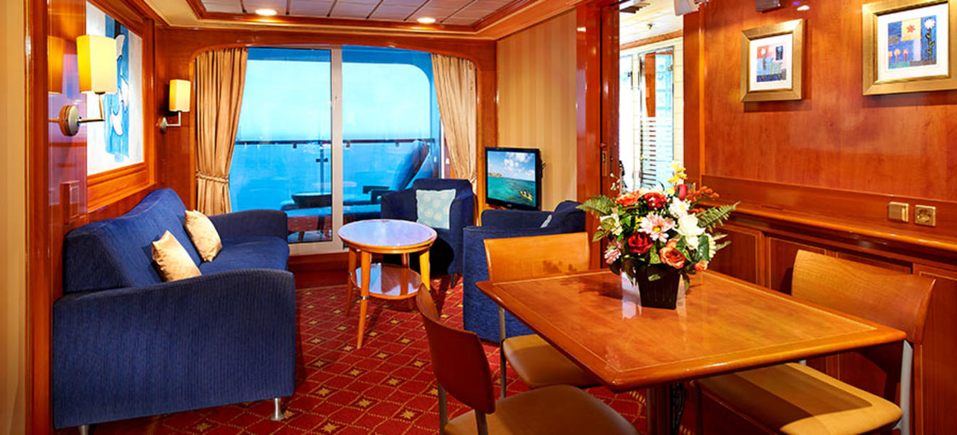 A Sail Away Mini-Suite stateroom guarantees a Mini-Suite stateroom or better. This stateroom may be on any deck and assigned up to one day prior to embarkation. Four guests can be accommodated in these suites.