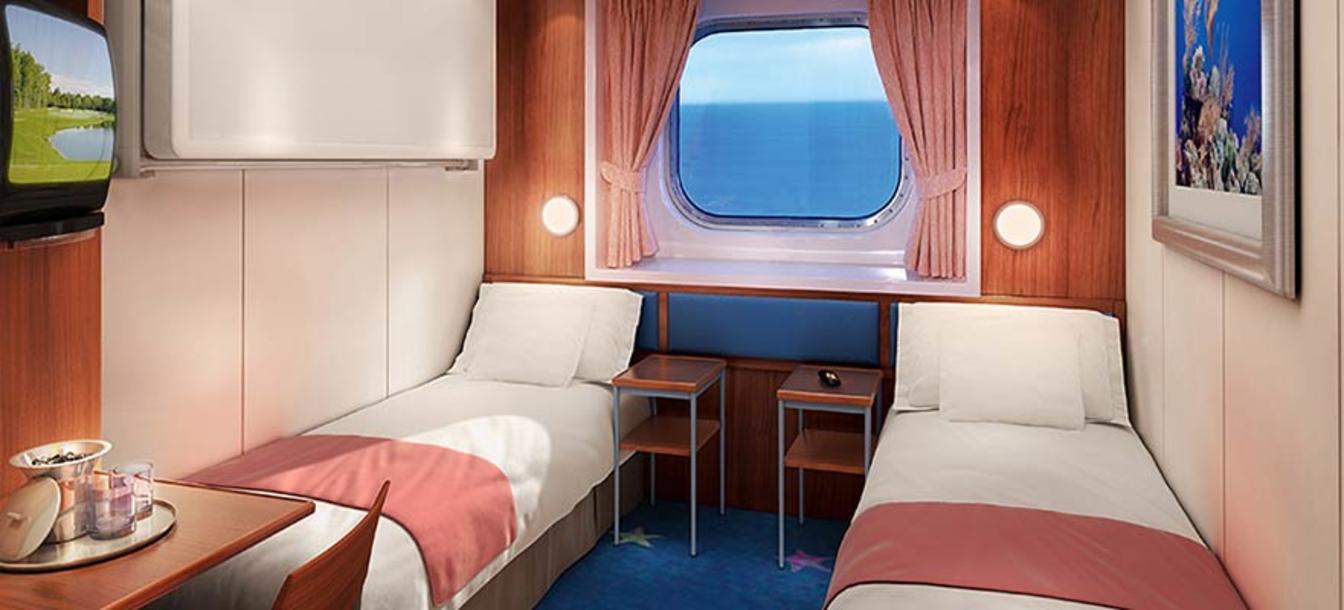These Oceanview Staterooms have portholes with obstructed views. The stateroom includes two lower beds that convert into a queen-size bed, as well as one Pullman and one pullout bed, providing enough space to accommodate up to four guests.