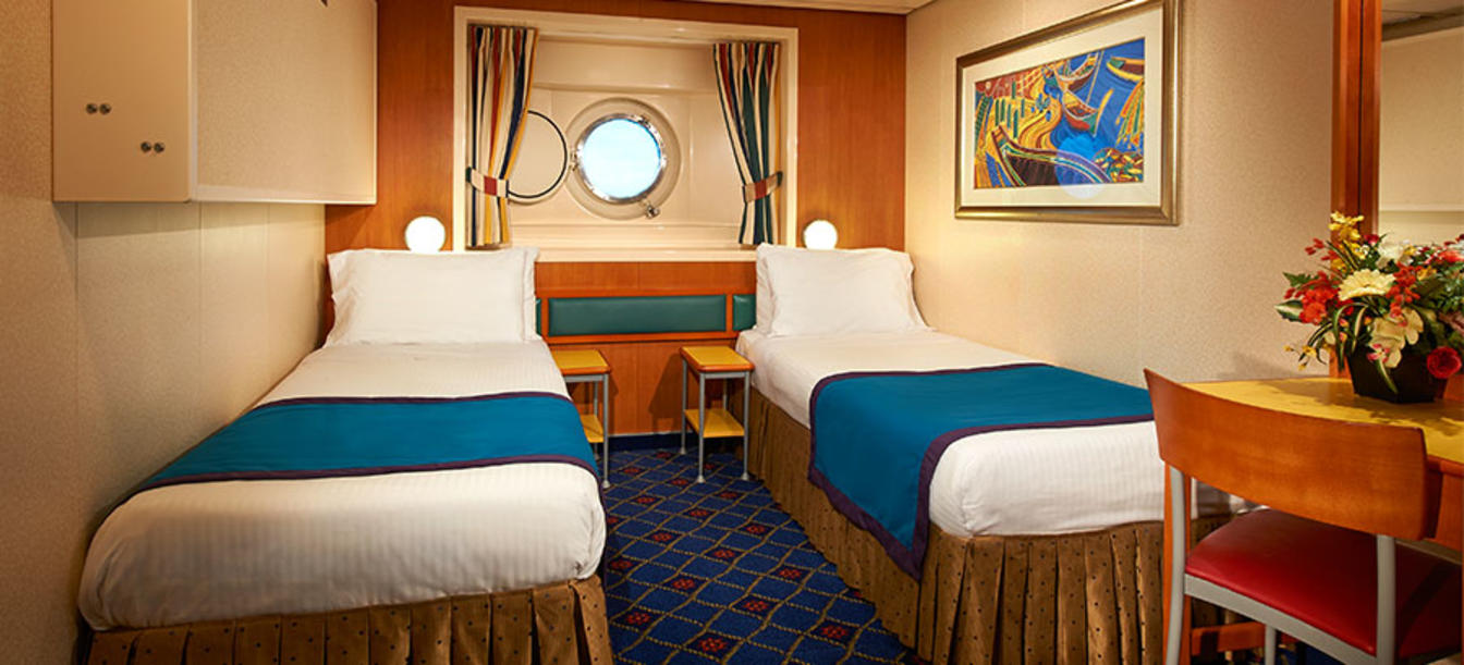 These Inside Staterooms offer an affordable way for up to four people to cruise. The two lower beds convert into a queen-size bed and additional bedding is provided to accommodate up to two more guests.
