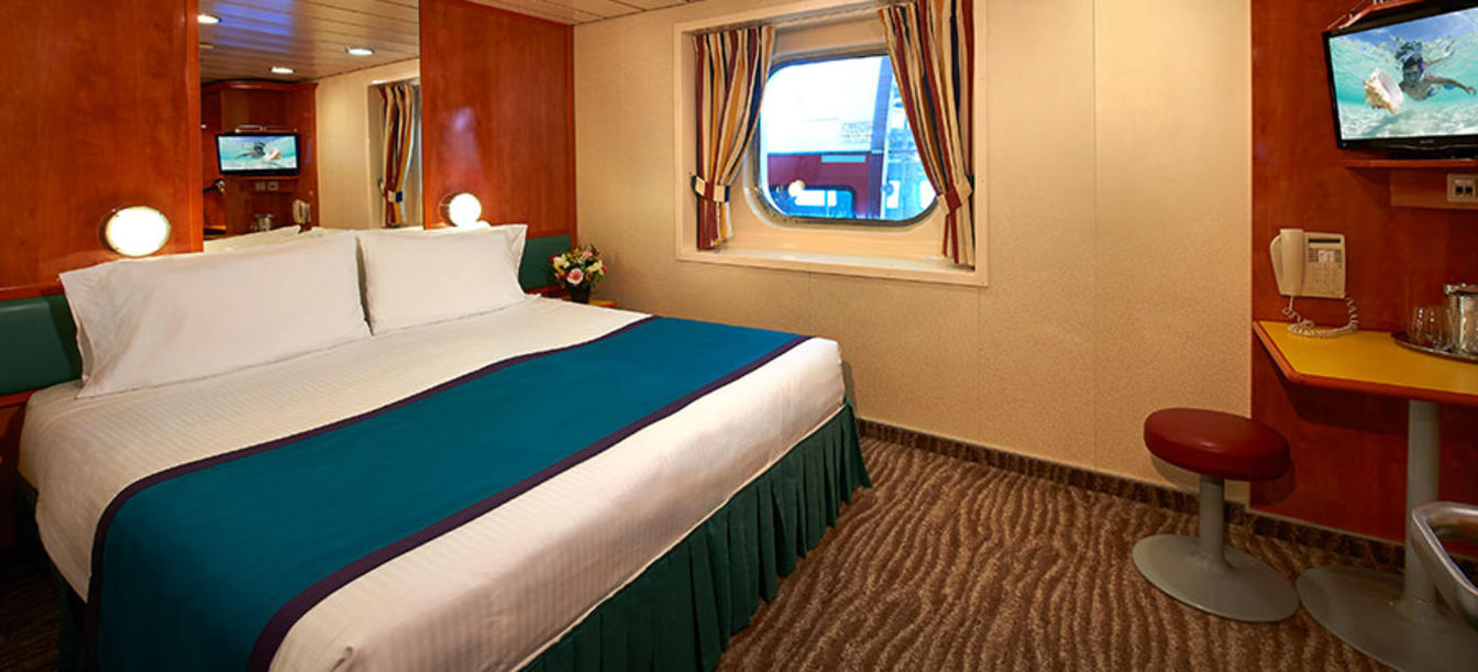 With room for up to four guests, these Oceanview Staterooms come with two lower beds that convert into a queen-size bed and additional bedding to accommodate up to two more guests, as well as a porthole that offers a great view. Because these are mid-ship staterooms, guests have easy access to everything fun and exciting on board.