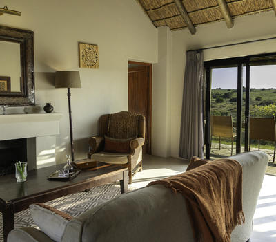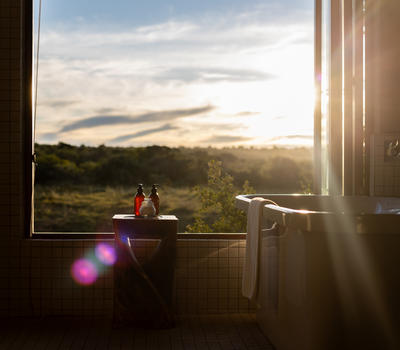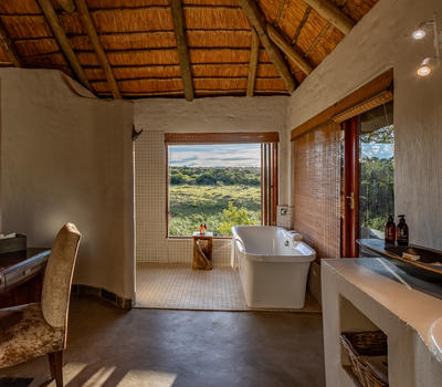 Our spacious two-bedroom Suite is the perfect retreat for families or friends sharing an unforgettable African adventure. A generous lounge area separates the two bedrooms, creating a sense of privacy and comfort. The main suite features a king-size bed, indoor and outdoor showers and a deep-soaking bathtub to unwind and relax. The second bedroom offers twin beds and a convenient indoor shower and WC. Thoughtful amenities ensure a seamless and comfortable stay.