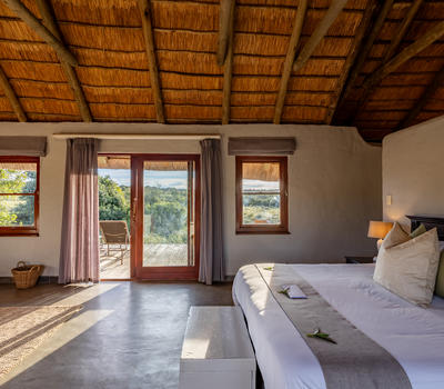 Luxury King Suite offers a seamless blend of style, space, and a true connection to the surrounding wilderness. Thoughtfully designed, it provides the flexibility of king-size or twin beds, along with a comfortable lounge area featuring a fully stocked minibar and tea and coffee facilities. The elegant bathroom includes both indoor and outdoor showers, a bathtub, and a separate WC for added convenience. Step onto your private viewing deck to unwind and enjoy uninterrupted views and the chance to spot passing wildlife.