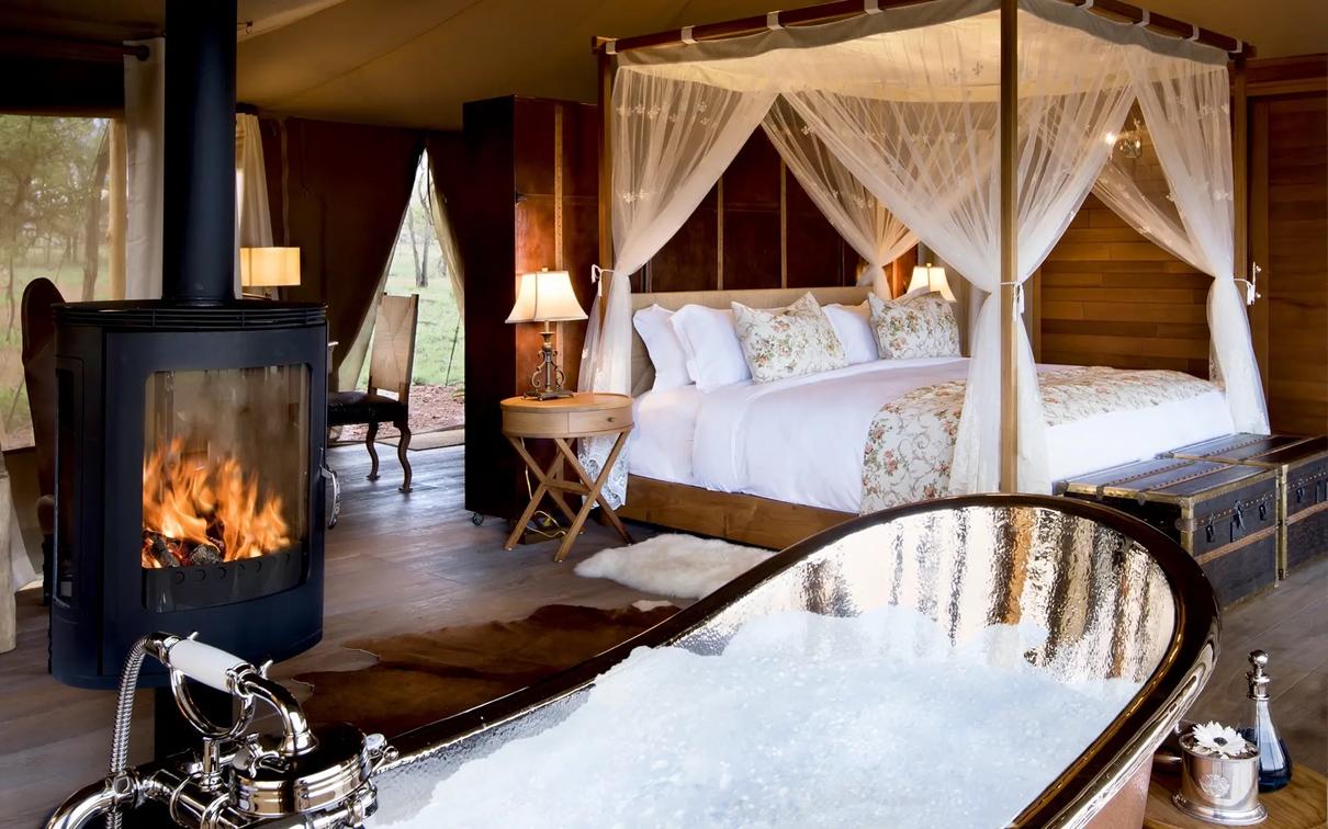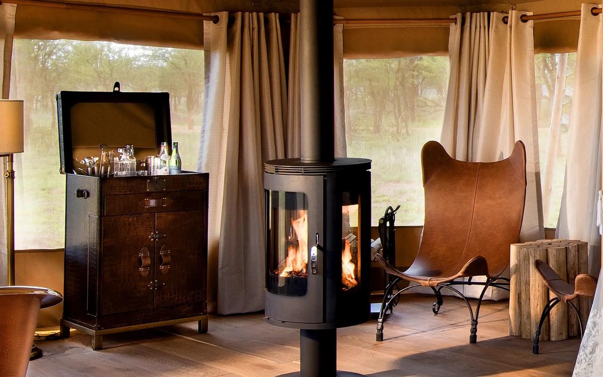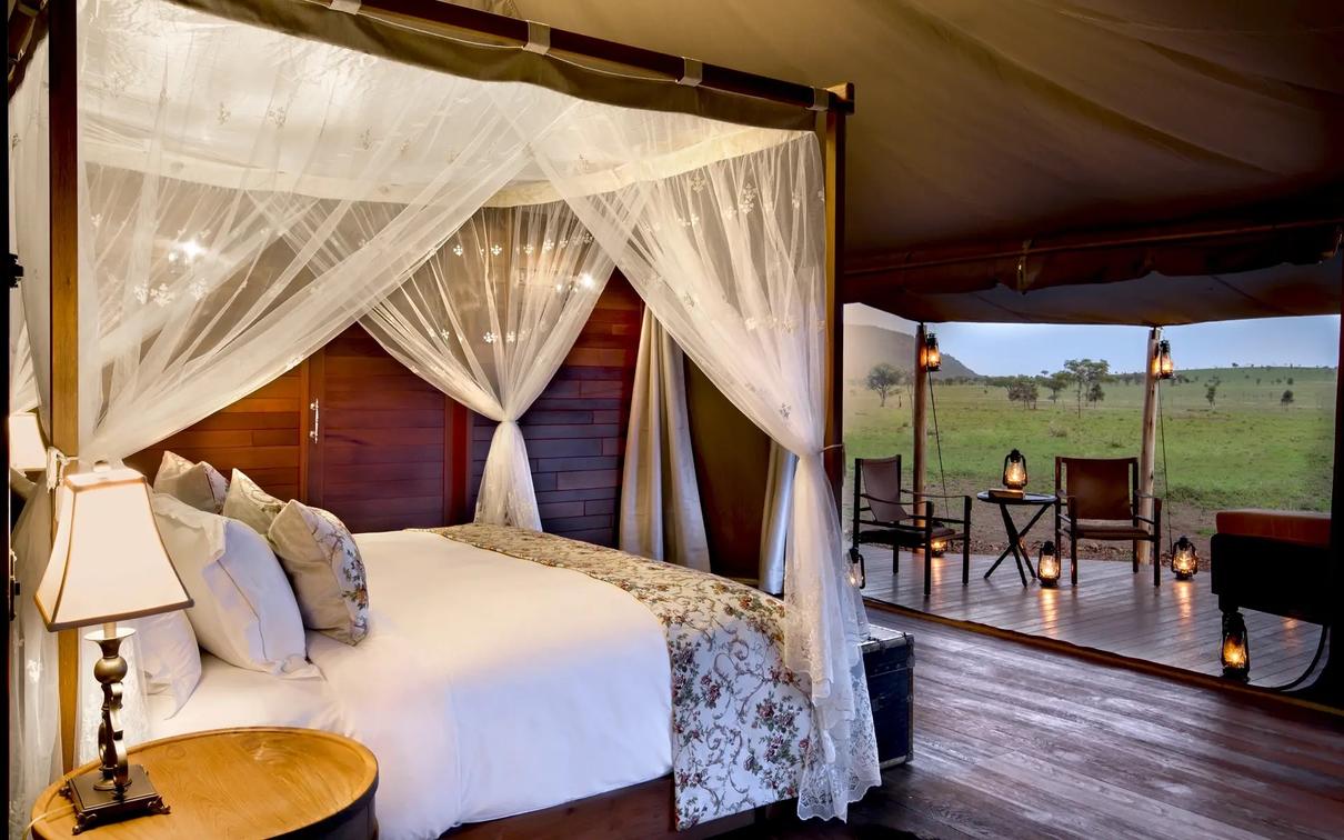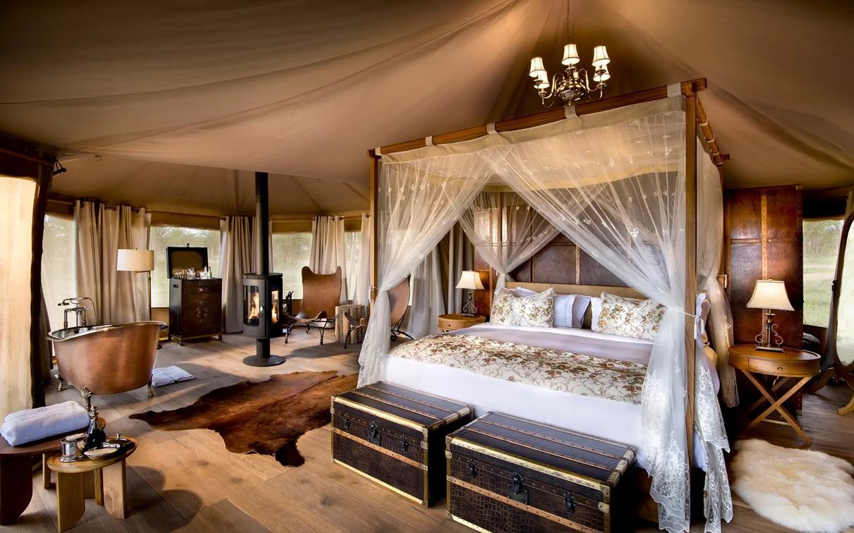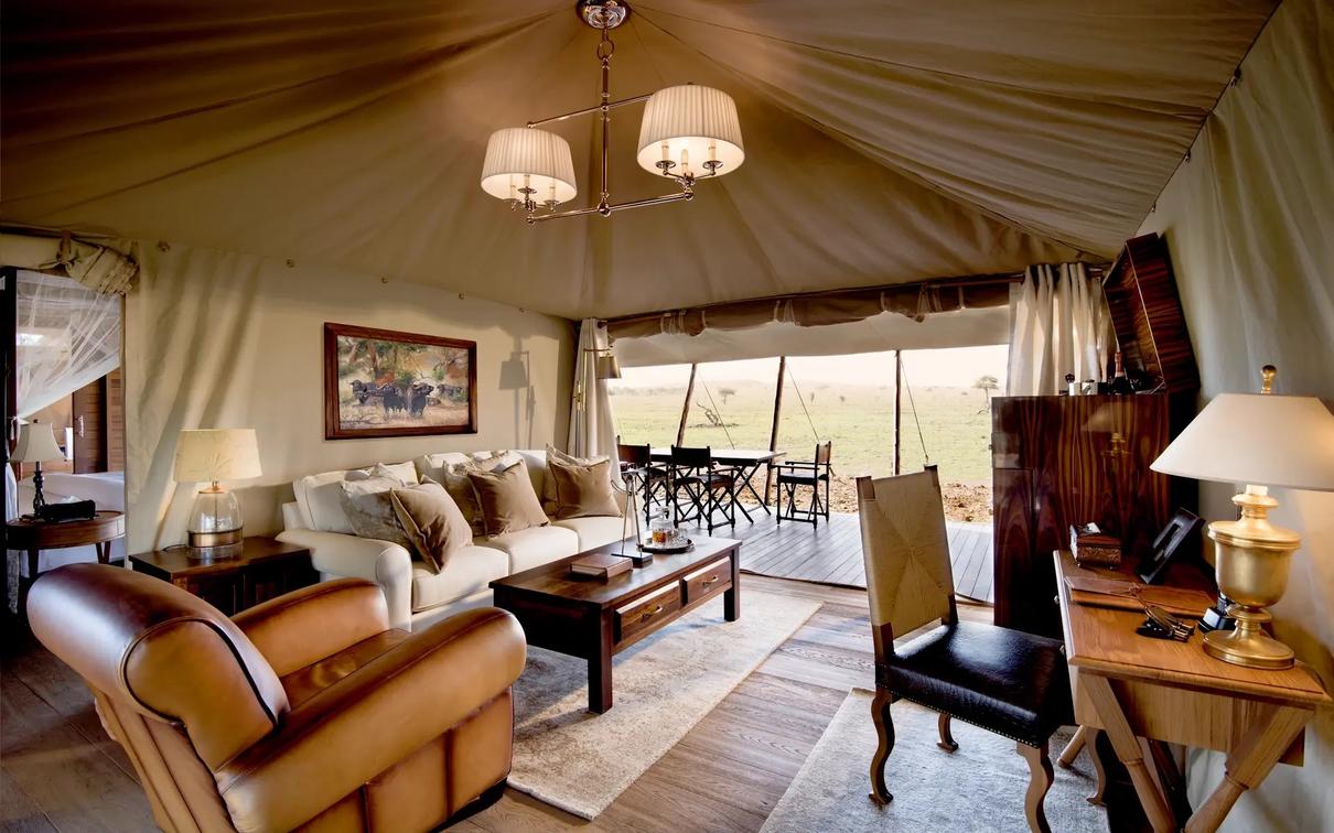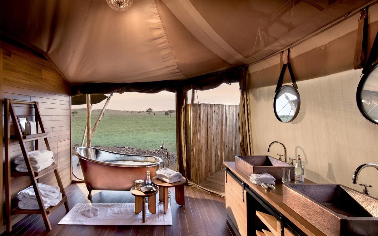 Each of the twelve one-bedroom tents, measuring 63 sq.m, can sleep up to three guests, offering a serene escape. Each tent overlooks and provides unobstructed views of the stunning open savannah, and any wildlife passing within miles can be seen from the comfort of the guest bedrooms or private veranda.