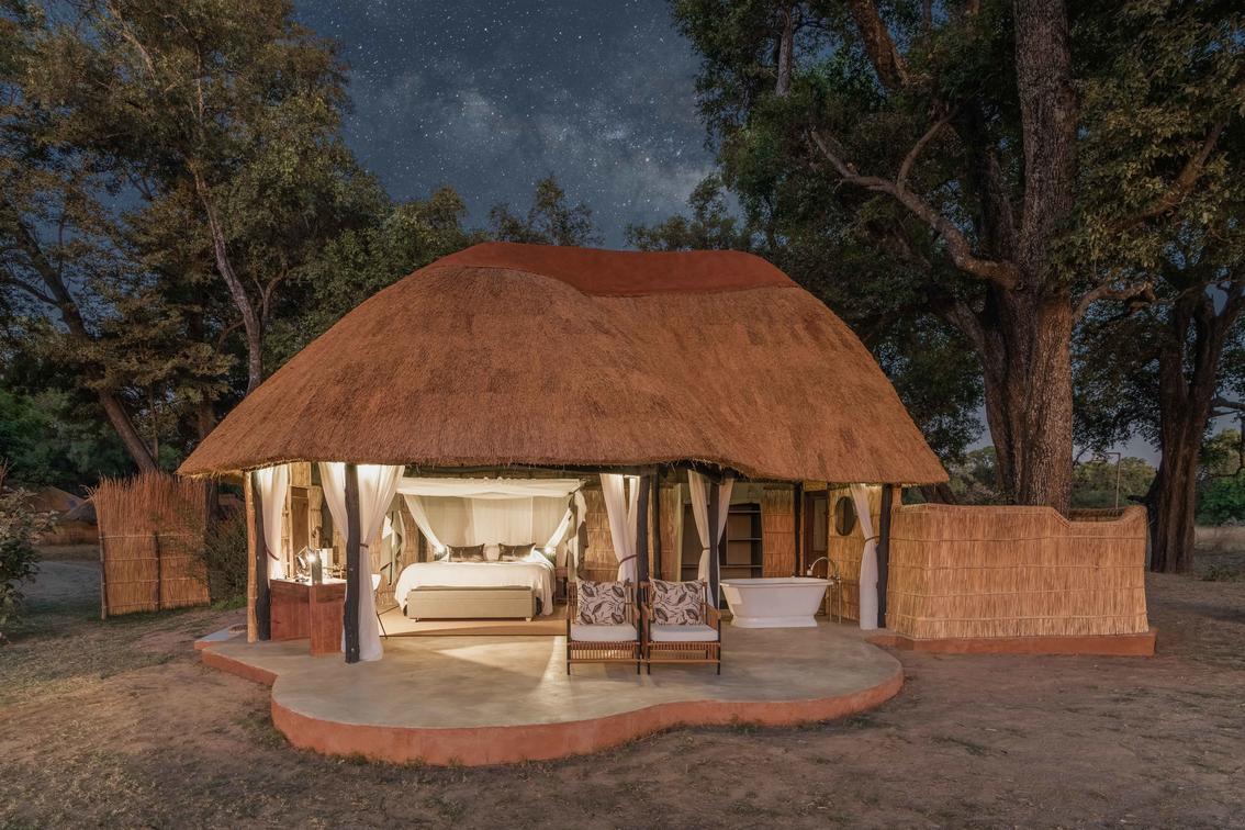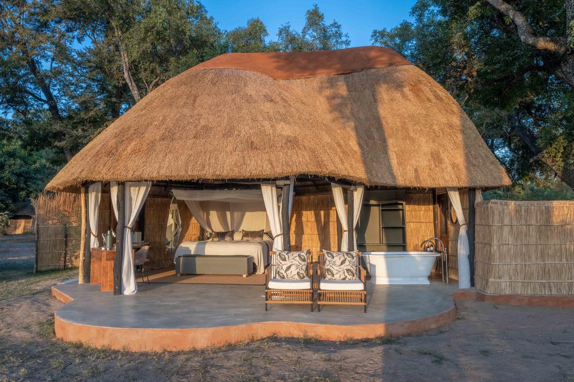 Flanked by a grove of towering ebony trees on one side and the Luangwa River on the other, Time + Tide Mchenja Camp offers luxury in the heart of the national park. Overlooking a wide river expanse, the camp is wonderful for watching large herds of elephants crossing the Luangwa. The suites bring style and comfort to an authentic safari experience. Between game drives unwind in your clawfoot tub, watching the river meandering past through the floor-to-ceiling windows. From the comfort of your suite, listen to the bellowing hippos or watch as elephants feed on seed pods just outside your room. Come, experience this wild land for yourself.