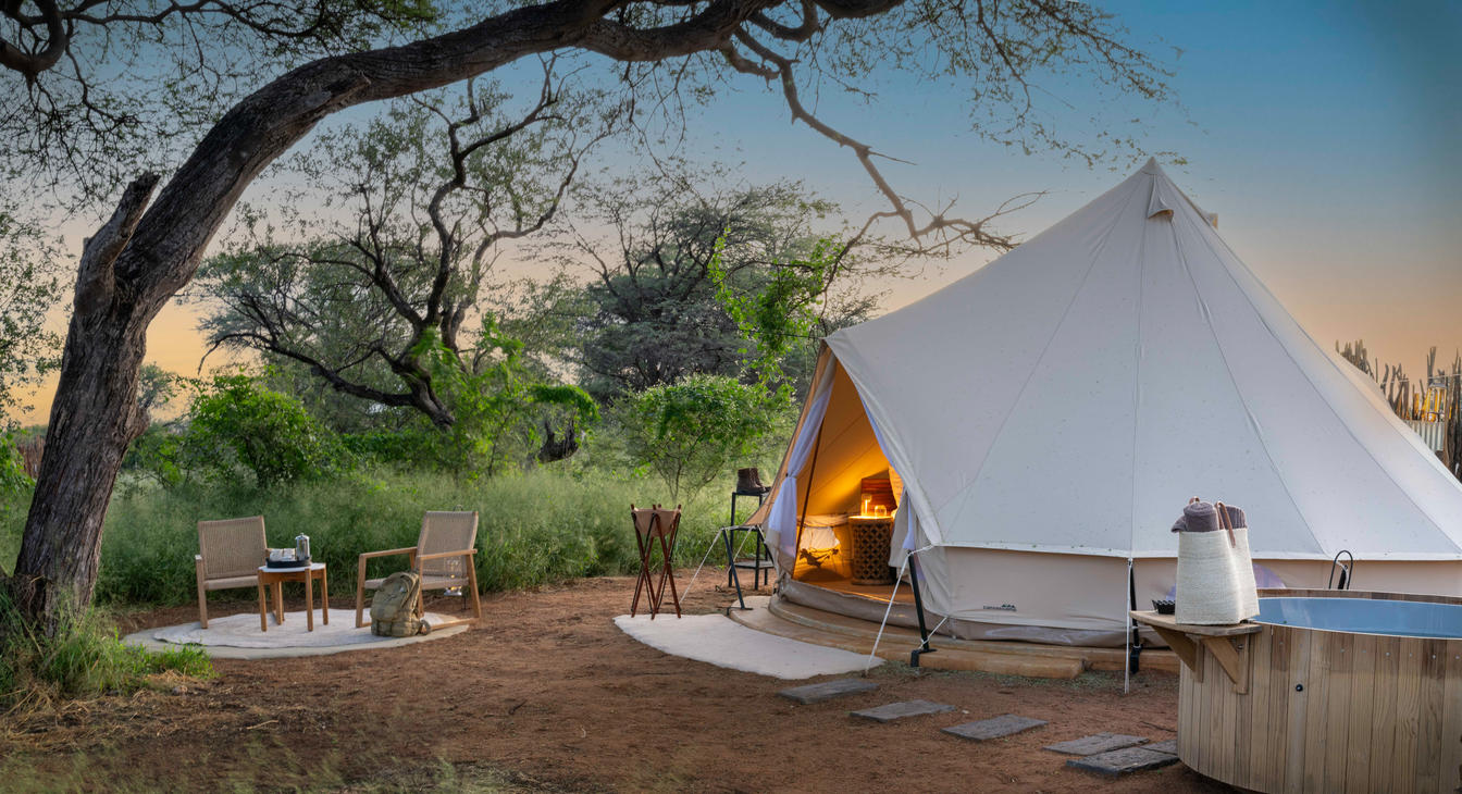 Outside the Bell Tent is a private wood-fired hot tub and a seating area to relax in between your wilderness adventures.