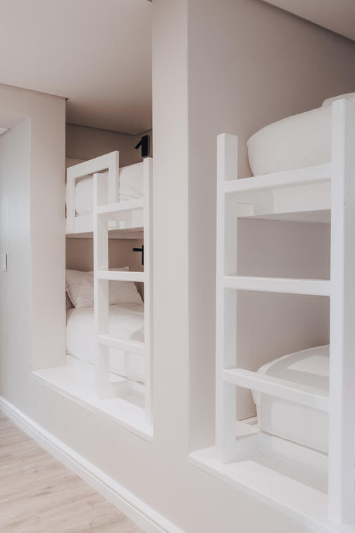 The Beach features 2 bedrooms which can accommodate 4 adults and 4 individual pods which can accommodate an additional 4 children. 2 Bathrooms with showers only. Kitchenette.