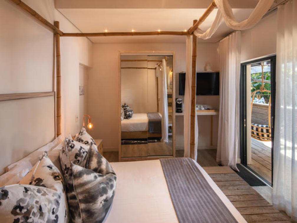 This tropically designed room with a king size bed and en suite bathroom is idyllically situated on the cliff side part of the guest house. This room may lack the expected view, but it compensates with direct access to a vibrant garden