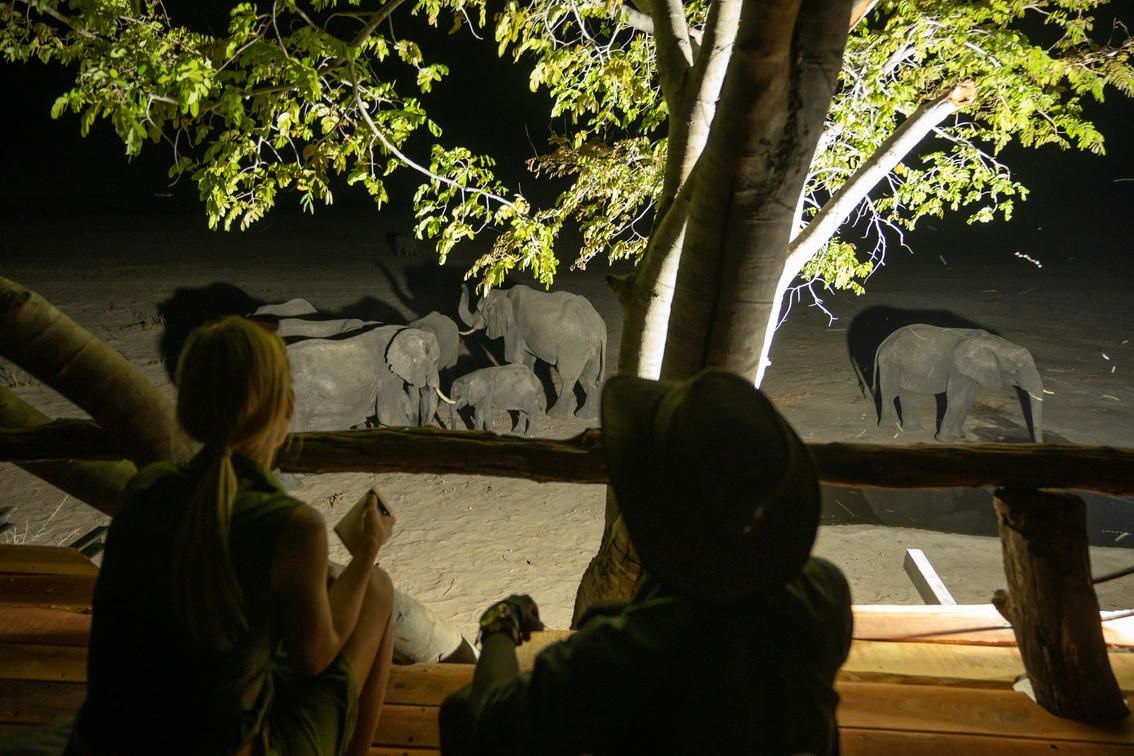 viewing platform, guarded from the sun by leafy teak trees and set with bean bags for longer viewing