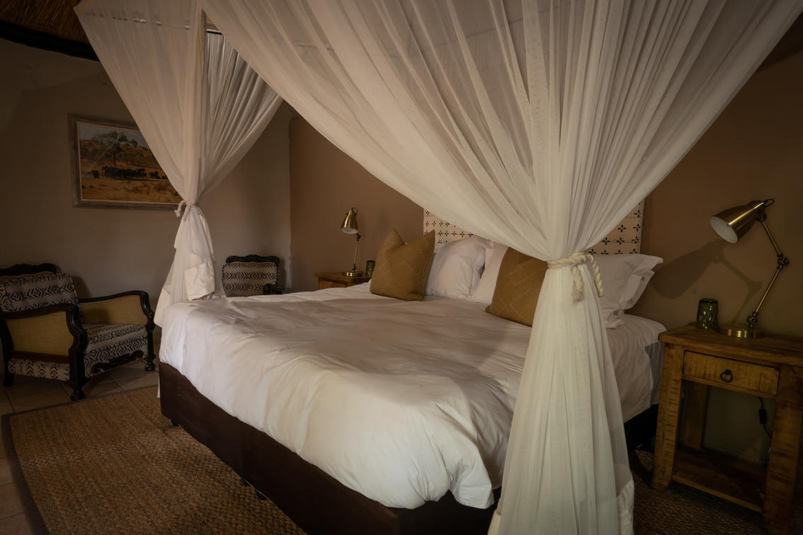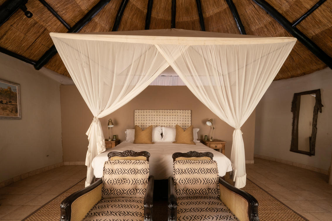 The 11 round huts, known as rondavels, are set between ancient hard woods providing a canopy of shade and all have pool facing views.