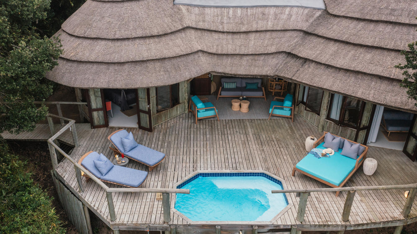 This luxury family room comprises two bedrooms both en-suite (main bedroom has bath & shower, double vanity and toilet and an outside shower). The second bedroom has a shower only, single vanity and toilet. The two bedrooms are separated by a large deck with private plunge pool. Both bedrooms have separate entrances.