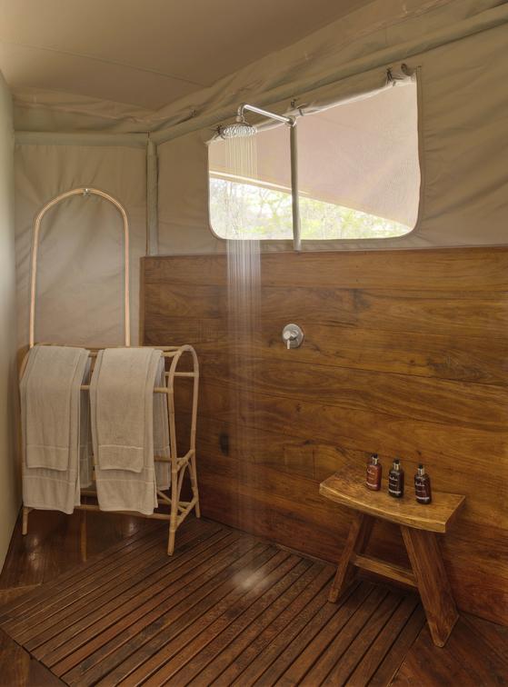 One of Sayari’s 15 tented suites is a spacious, two-bedroom family suite suitable for two adults and three children under the age of 16. The main bedroom is similar to that of the other tents and has all the amenities you would expect: a king-sized bed, walk-in shower, huge bathtub with stunning views of the northern Serengeti, and of course, a spacious private veranda. The main bedroom is linked to the children’s room by a raised platform complete with safety railings. This second bedroom has three single beds with access to a spacious en-suite bathroom with walk-in shower. The second bedroom also has a private veranda, so no one misses out on those fabulous views of the wilderness.