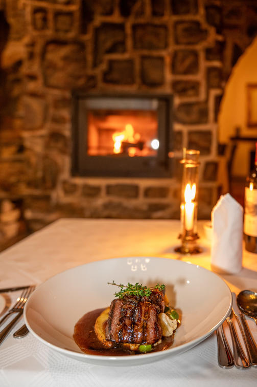 Named after the famous 1920s locomotive, The Flying Scotsman restaurant offers a fine-country culinary journey. Our daily-crafted, four-course set dinner menu showcases local, seasonal ingredients in an intimate setting. The charming dining room, with its fireplaces, white linen, and silverware, creates a sophisticated yet inviting atmosphere. To maintain this, we welcome children ages 12 and over.