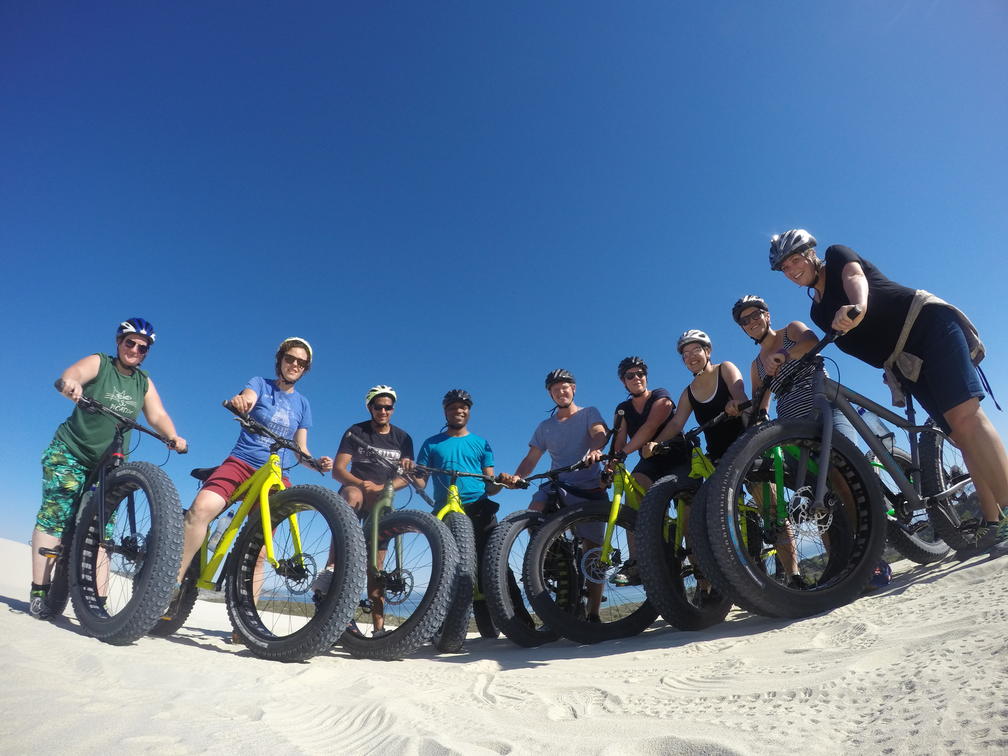 When reaching the dunes we will make our way up and across to reach a fantastic downhill section where we will pick up speed before reaching the top of our first vertical dune face. After a briefing on how to ride down the dune we down the face but for those just wanting an easy ride you can go around the side where it is an easy slope. The dune face may feel impossible and dangerous to do but the ride is in fact very controlled and the sand will slow the bike down.