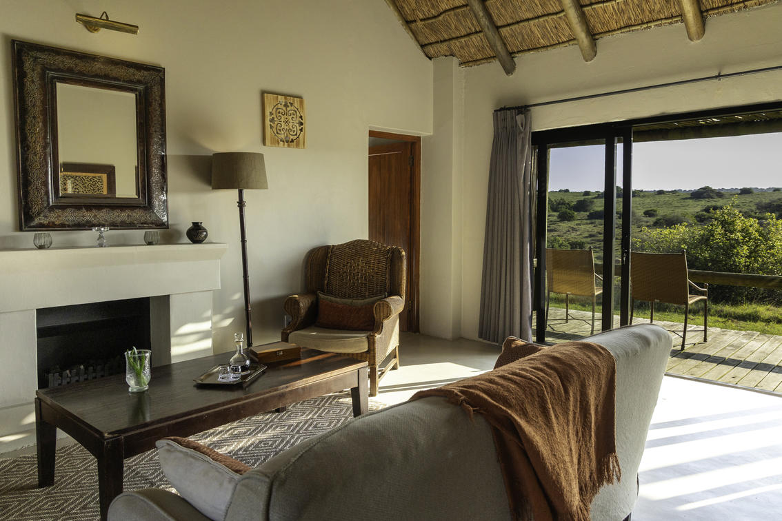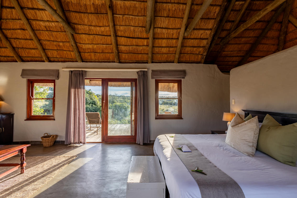 Luxury King Suite offers a seamless blend of style, space, and a true connection to the surrounding wilderness. Thoughtfully designed, it provides the flexibility of king-size or twin beds, along with a comfortable lounge area featuring a fully stocked minibar and tea and coffee facilities. The elegant bathroom includes both indoor and outdoor showers, a bathtub, and a separate WC for added convenience. Step onto your private viewing deck to unwind and enjoy uninterrupted views and the chance to spot passing wildlife.