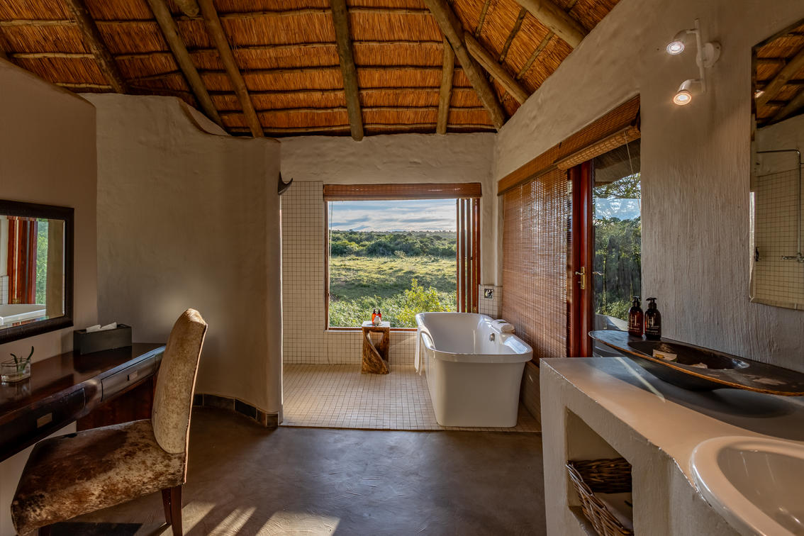 Our spacious two-bedroom Suite is the perfect retreat for families or friends sharing an unforgettable African adventure. A generous lounge area separates the two bedrooms, creating a sense of privacy and comfort. The main suite features a king-size bed, indoor and outdoor showers and a deep-soaking bathtub to unwind and relax. The second bedroom offers twin beds and a convenient indoor shower and WC. Thoughtful amenities ensure a seamless and comfortable stay.