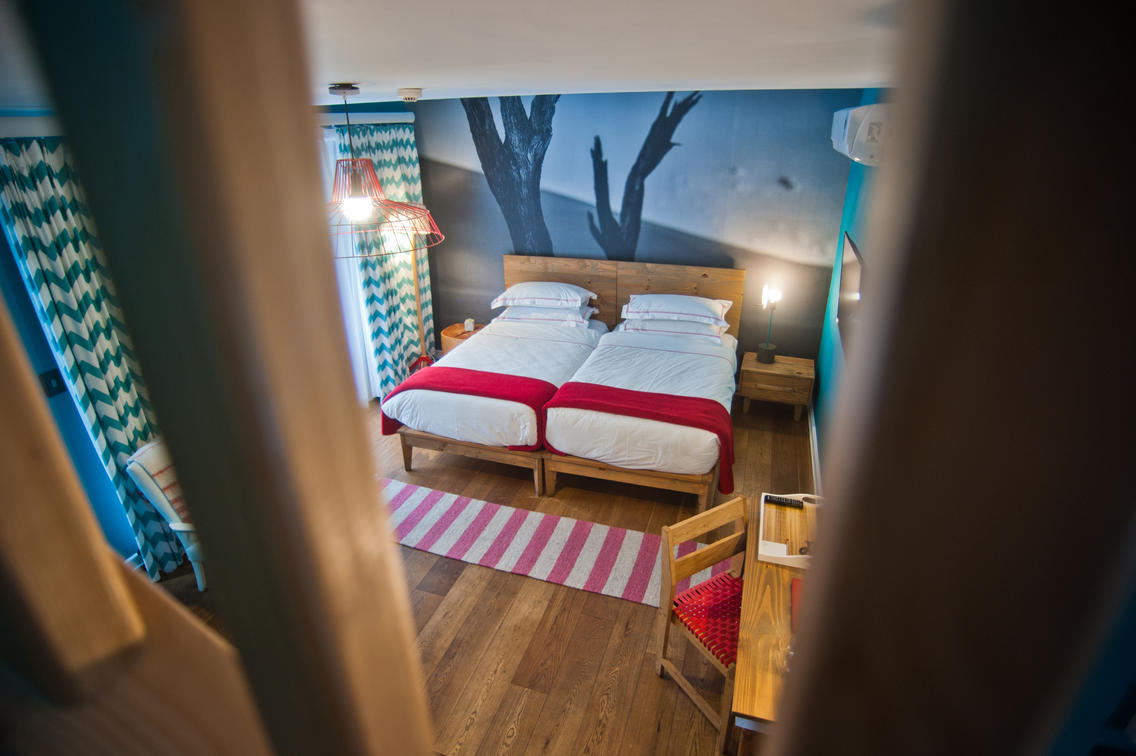 The familly rooms are loft rooms, with twin beds downstairs and ...