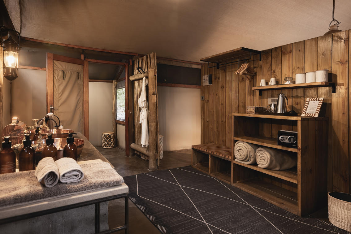 The stylish tents are spacious, and the en-suite bathrooms include double vanities