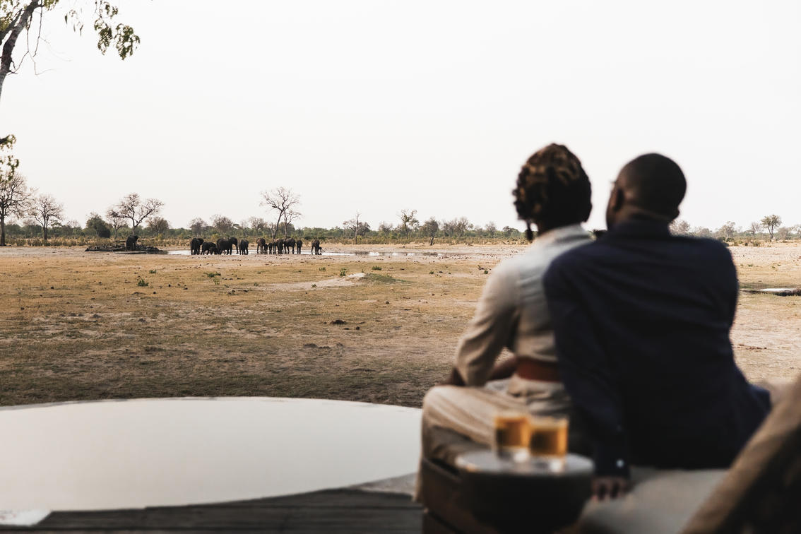 Little Makalolo’s waterholes attract wildlife from far and wide, including the busy pan in front of camp