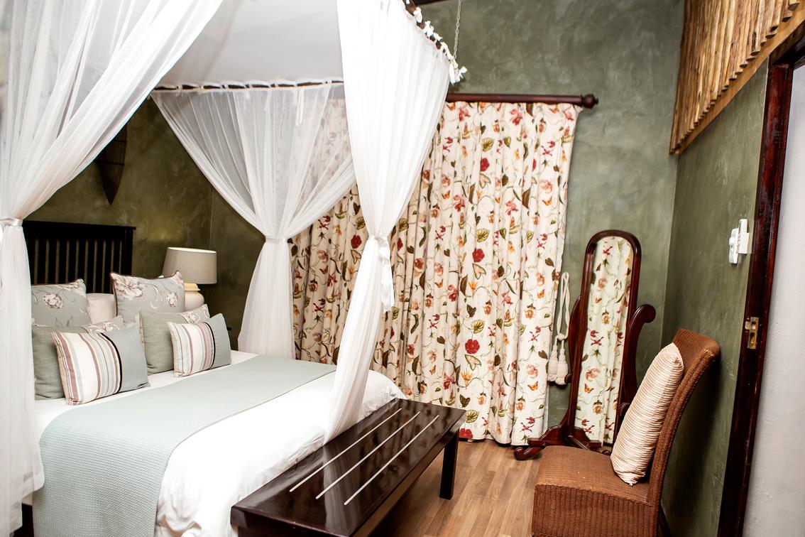 The Suite, Windfall Cottage, is privately situated under Marula trees and consists of a lounge with DSTV, romantic bedroom, en-suite bathroom and an outside shower in a privately fenced Boma area.