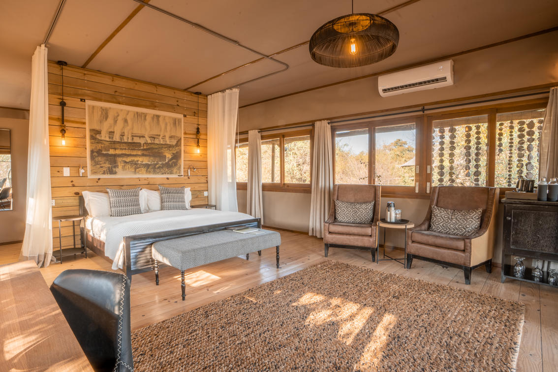 The lounge and dining areas have been spread out to create pockets of calm for guests to enjoy their wild surrounds