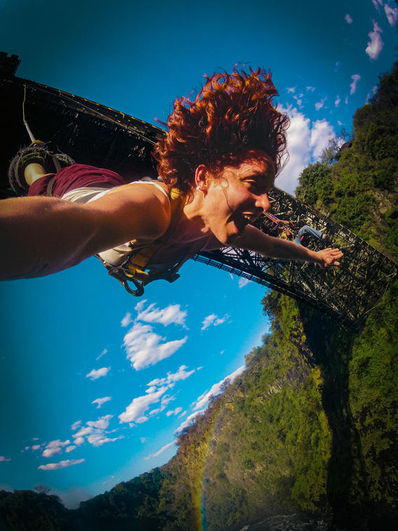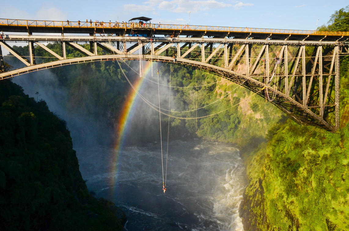 Jump into the rainbow at the Worlds greatest Bungee Jump. The original, the one and only, the must do, the ultimate thrill! 4 seconds of freefall, 111m of Pure Adrenalin! Off the famous Victoria Falls Bridge, with a spectacular backdrop of the majestic Victoria Falls, move to the edge, arms out and 5-4-3-2-1- BUNGEE leaving yourself plummeting towards the rumbling waters of the rapids of the Zambezi River and let the adrenaline flow. For the more experienced, speak to your Jump Master and make it more adventurous by doing an Ankle-tied Back-flip or Star Elevator... Only Bungee in Victoria Falls!