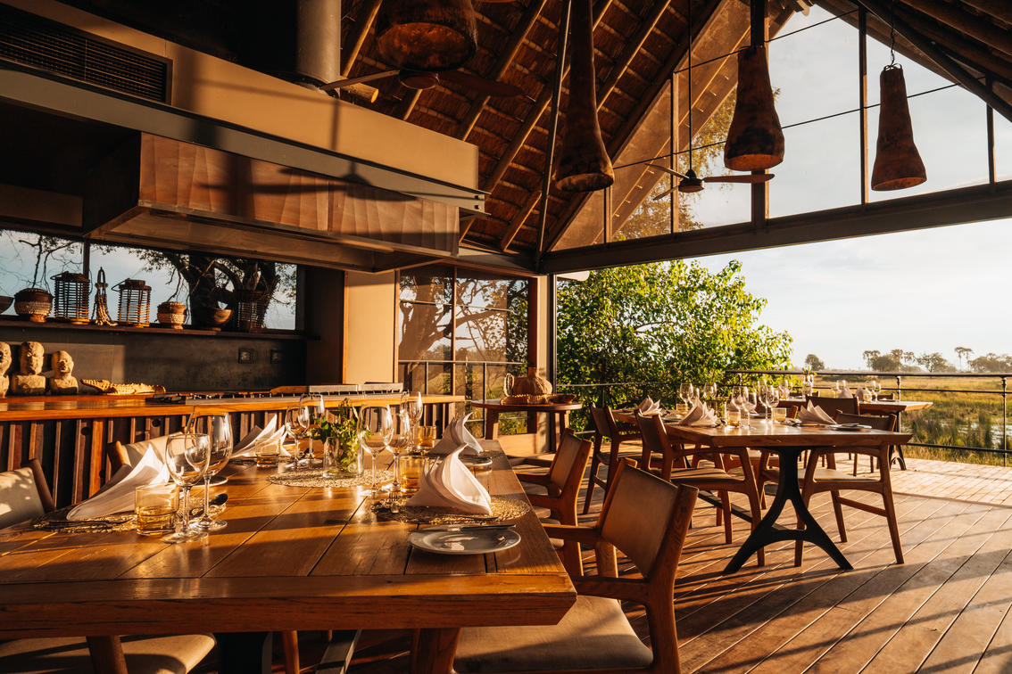 Dining options at Chitabe take full advantage of the panoramic views and constant wildlife parade.
