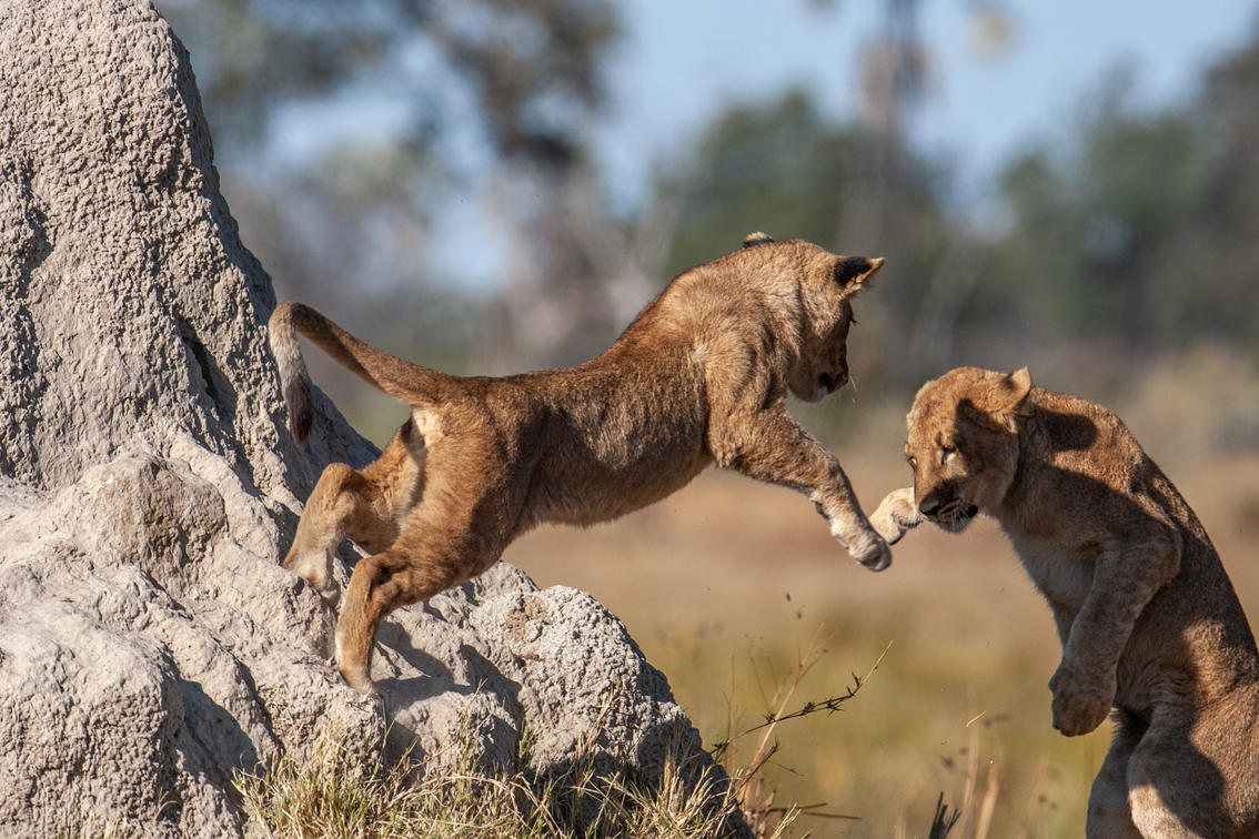 Young lions at play.