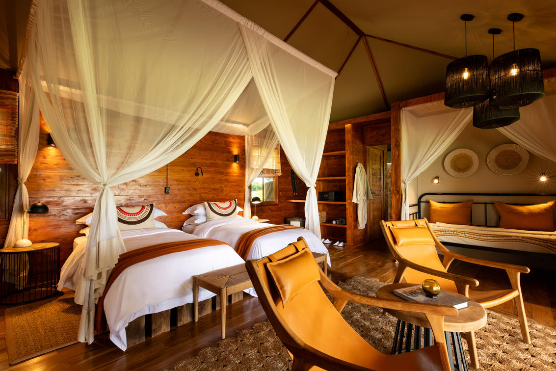 Asilia Africa - Sayari Retreat - Bedroom with extra Twin Bed set up