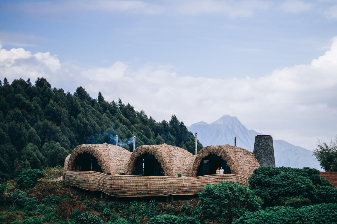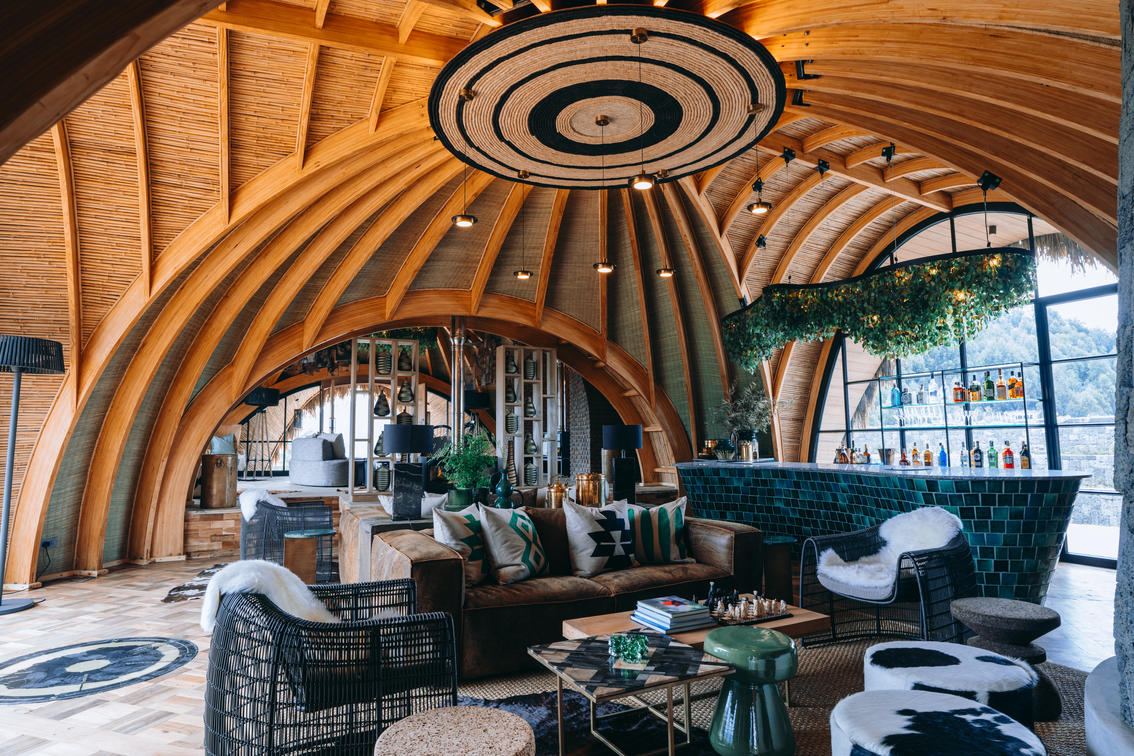 The lodge's architecture and décor reflect the essence of Rwanda, through their blend of thatch, timber, hand-chipped volcanic rock, exposed brick and basketry.