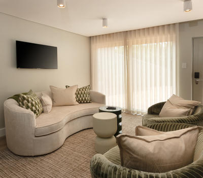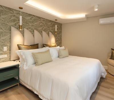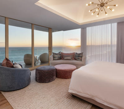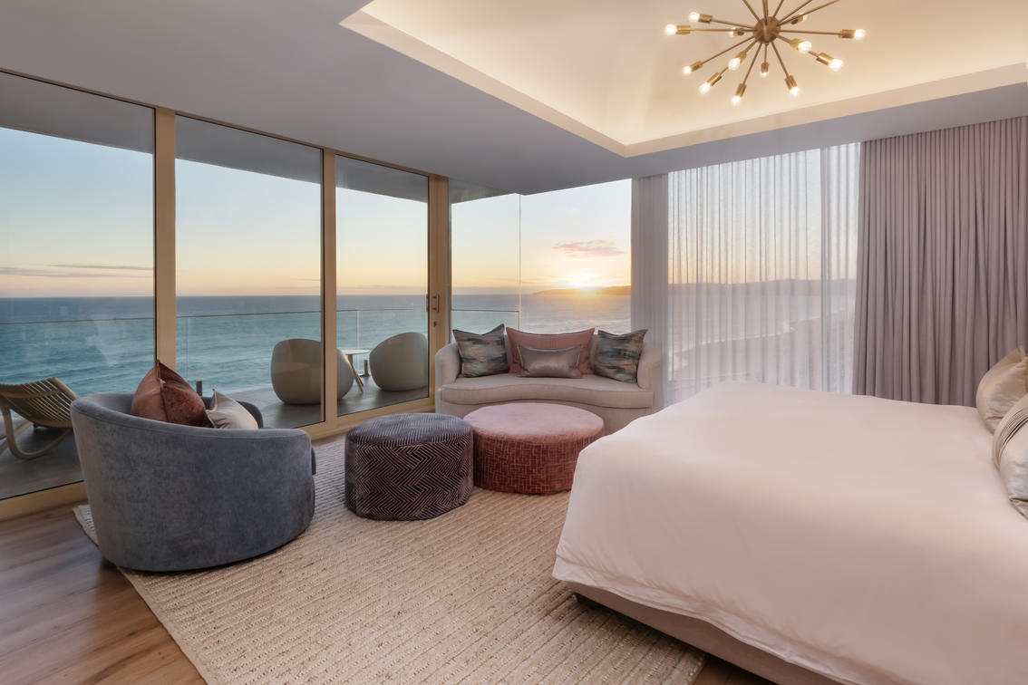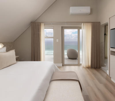 Elevated luxury, located on either the top level or on the sea facing corners of the hotel with seamless ocean views and a balcony with two loungers. Each uniquely designed, spacious, innovative features, free standing baths and increased cupboard space.
