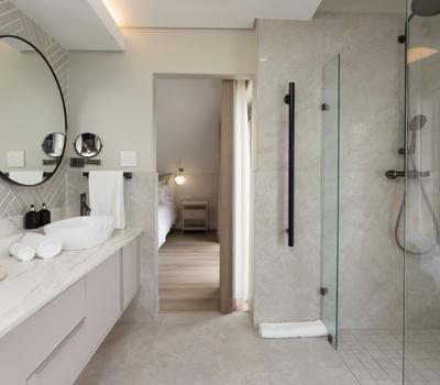 These beautifully designed rooms feature a cosy bedroom with a marble bathroom, bath, separate shower and toilet. Two of these rooms can be sold as an individual unit or as an adjoining room with a sea facing suite. The adjoining option can accommodate a maximum of four (4) guests.