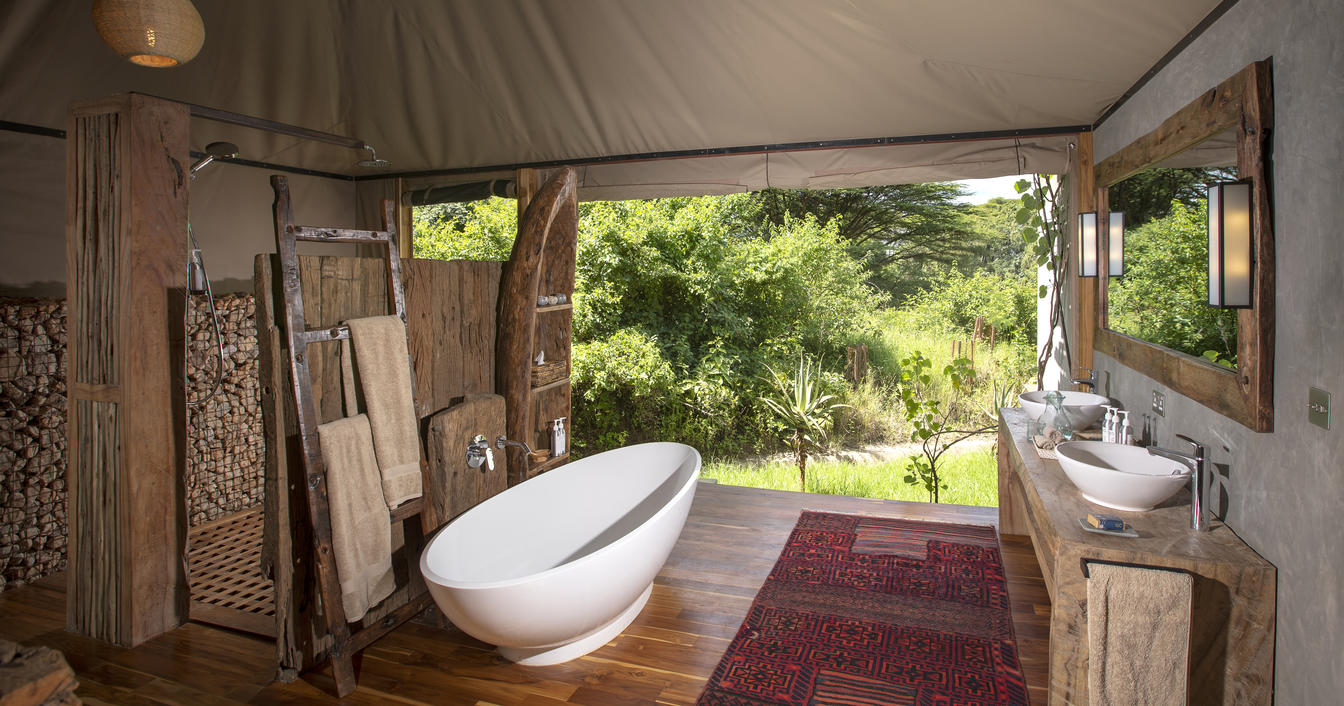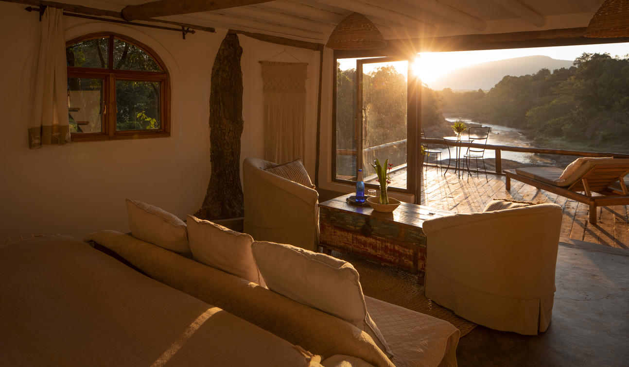 Olerai cottage, overlooking the Mara river, with a huge verandah, brass bath and outside shower