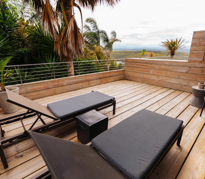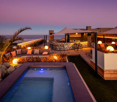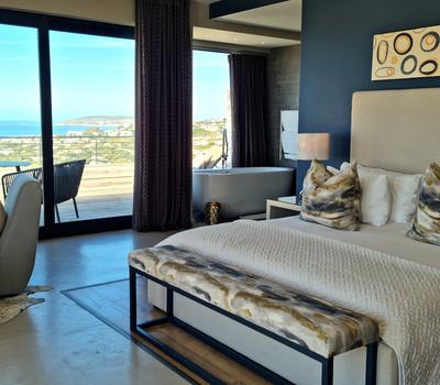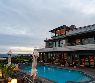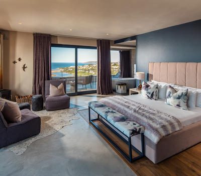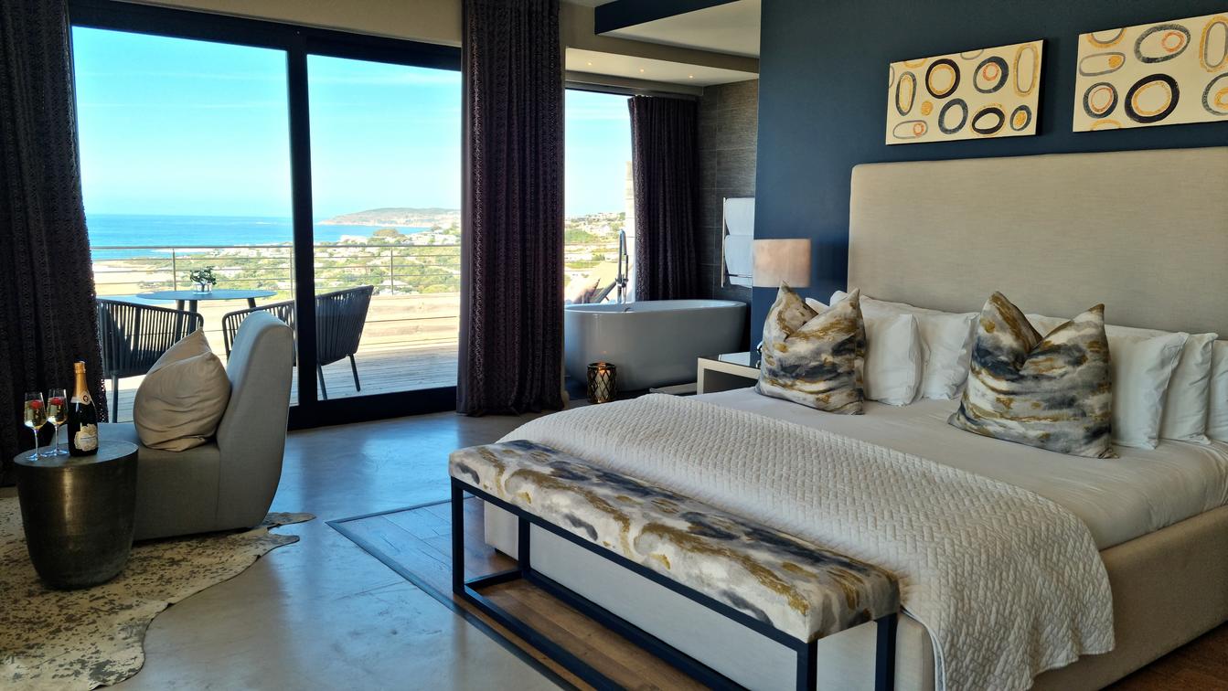 Architecturally designed Sky Villa Boutique Hotel overlooks the beautiful bay of Plettenberg Bay, also known as the Bay of Beauty, ‘ Bahia Formosa’.