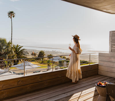 Our Honeymoon Suite boasts a King Bed and luxurious en-suite bathroom with a shower, deep soaking bathtub, a heated towel rack and underfloor heating. There is a cozy sitting area with a fireplace and a private terrace that opens to a breathtaking view of the ocean