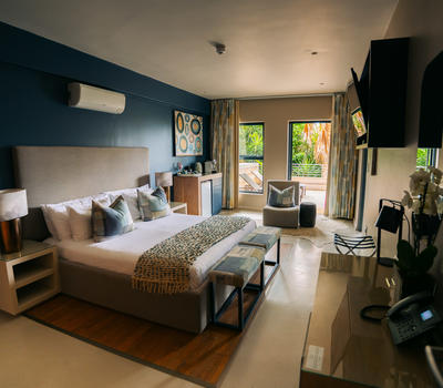 Beautiful Sea Facing Room with a private terrace overlooking the Ocean. This room features a King Bed and an en-suite bathroom with a shower, underfloor heating and a heated towel rack.